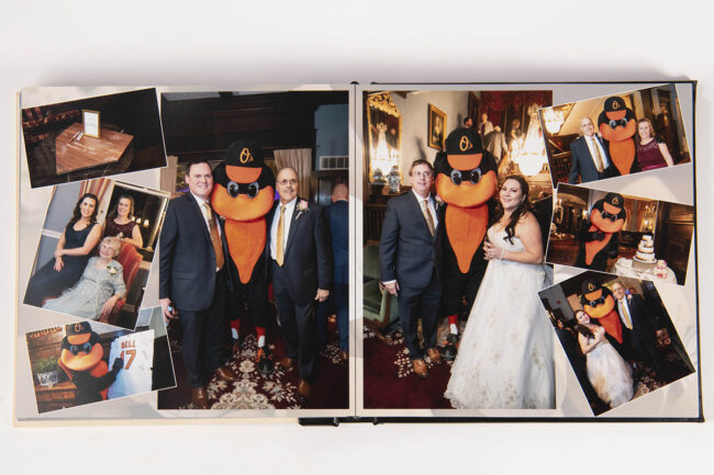 Take a look at this album we recently created. This elegant yet playful wedding was Orioles themed, and we incorporated that into the design itself. We chose a wood and leather album cover and used creative layouts that transport the viewer to that special day. It’s a big album full of memories, from the people they love and who love them. It’s something worth cherishing.