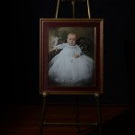 The original was a hand colored crayon portrait. It was printed on a thin piece of fiber paper. A family member thought it would be helpful to glue it to a sheet of lead to give it some stability. Over the years, the glue bubbled in places and the photo started to deteriorate. At this point, the risk and price was too great to try and restore the original. The glue was still strong in a few places and would have destroyed the photo if we tried to lift it.