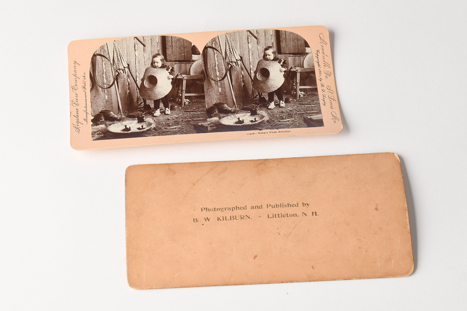 Mass-produced stereographs took the middle class by storm. Printers created the photographs using “steam driven machinery and mounted [the photos] on cards using assembly methods.” These images usually have a caption underneath the photo or on the back of the image to give context or commentary to the viewer. On the back, you may find the photographer’s information, series number, or other relevant information to the photo or the printer.